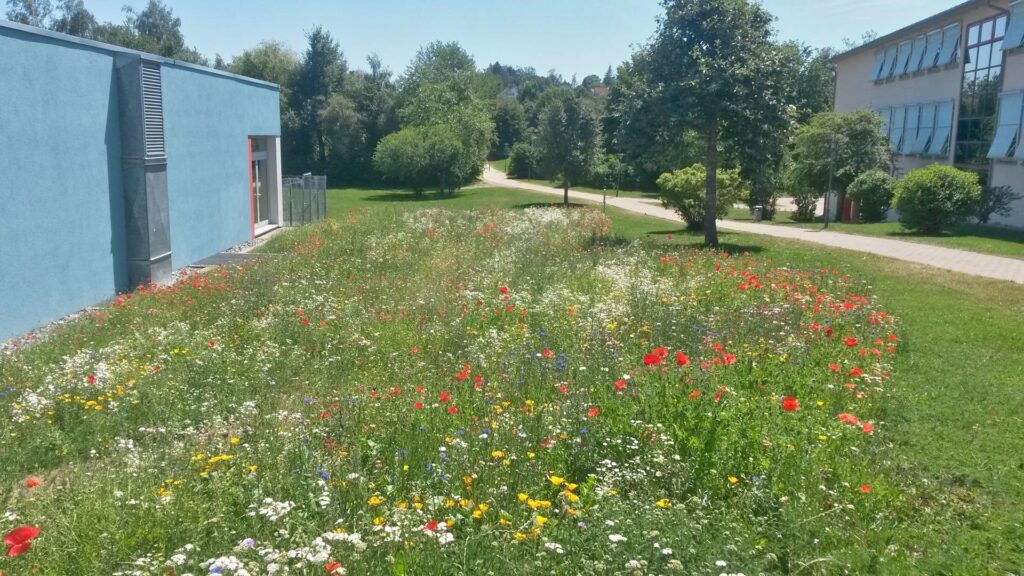 - Schulzentrum 2019-2020: Wo früher vor allem Rasen wuchs, entstanden rund um das Reinhold-Frank-Schulzentrum Ostrachtal und dessen Sportplatz artenreiche Wildblumenwiesen und Gehölze. Initiiert wurde das Projekt vom NABU im Rahmen des Aktionsprogramms „Natur nah dran“. Umgesetzt wurde es vom örtlichen Bauhof, unterstützt von Schülerinnen und Schülern, Lehrerinnen und Lehrern sowie Mitgliedern des Arbeitskreises „Natur und Umwelt“. Gepflanzt wurden unter anderem Frühblüher, Stauden und Wildsträucher. Fast alle Klassen beteiligten sich und erlebten hautnah, wie durch ihr Mitwirken ein vielfältiger Lebensraum für Wild- und Honigbienen, Käfer und Schmetterlinge entsteht. Das Projekt leistet nicht nur einen wertvollen Beitrag zum Artenschutz, sondern sensibilisiert die Jugendlichen auch für die Natur. In den folgenden Jahren konnten und können sie beobachten, wie sich die Flächen entwickeln, und verstehen, wie wichtig jeder einzelne Beitrag für die Natur ist.