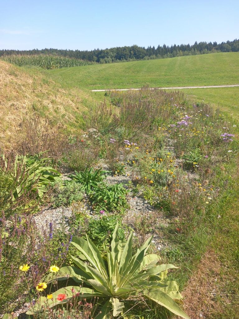 - Staudenbeete 2024: Pflanzen wie Ackerwitwenblume, Wiesensalbei oder Flockenblume, die einst typisch für unsere Wiesen waren, sind heute fast verschwunden. Stattdessen dominieren stickstoffreiche Futterwiesen und „Einheitsgrün“. Wildbienen, Schmetterlinge und Hummeln finden besonders im Frühjahr kaum noch Nahrung. Um dem Artenschwund entgegenzuwirken, engagierten sich NABU-Mitglieder und Einwohner für mehr Artenvielfalt auf Ostracher Grünflächen. Nach dem Vorbild der erfolgreichen Bad Saulgauer Biodiversitätsflächen entstanden an zwei Straßen und am Waldkindergarten Staudenbeete mit heimischen Wildpflanzen. Dafür wurde der Boden mit einem Kies-Sand-Gemisch abgemagert, da diese Pflanzen nährstoffarme Böden und Trockenheit bevorzugen. Beteiligt waren neben dem Bauhof der Gemeinde Ostrach und dem Kieswerk Müller auch einige Grundschulklassen des Schulzentrums Ostrach und der Waldkindergarten, die einige tausend Blumenzwiebeln gepflanzt haben.